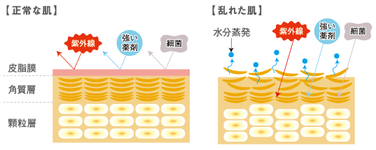 表皮の重要な働きのひとつは、さまざまな外的刺激(物理的・化学的)、乾燥、紫外線などに対して防御壁となる角質層を作ることであり、このターンオーバーによって防御壁は常に新しい状態を保ち、皮膚のバリア機能を果たしています。